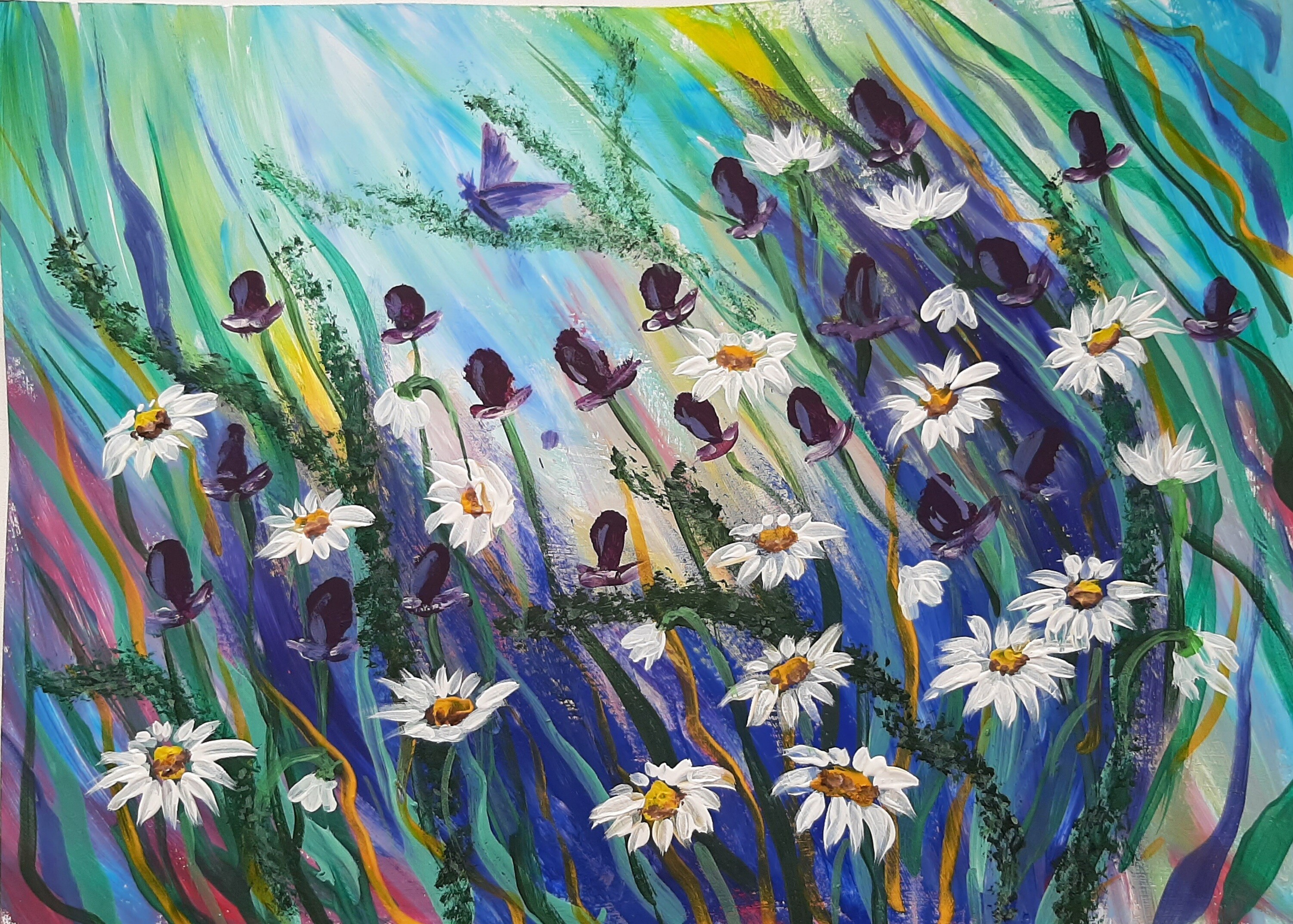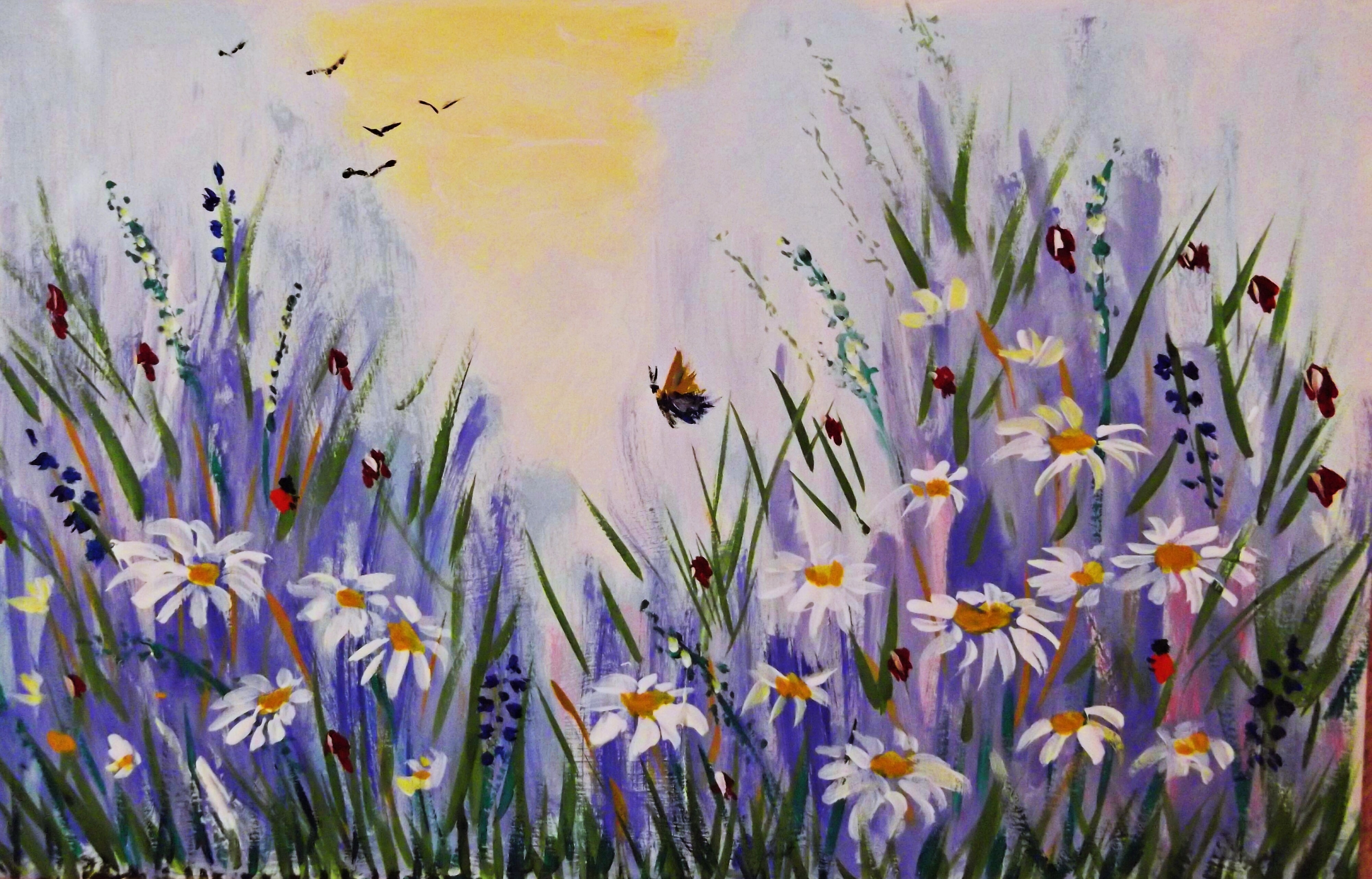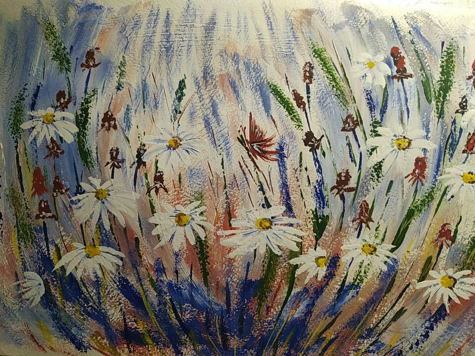 Ромашки. Рисуем картину кистями. Понятие светотень. Отработка мазков