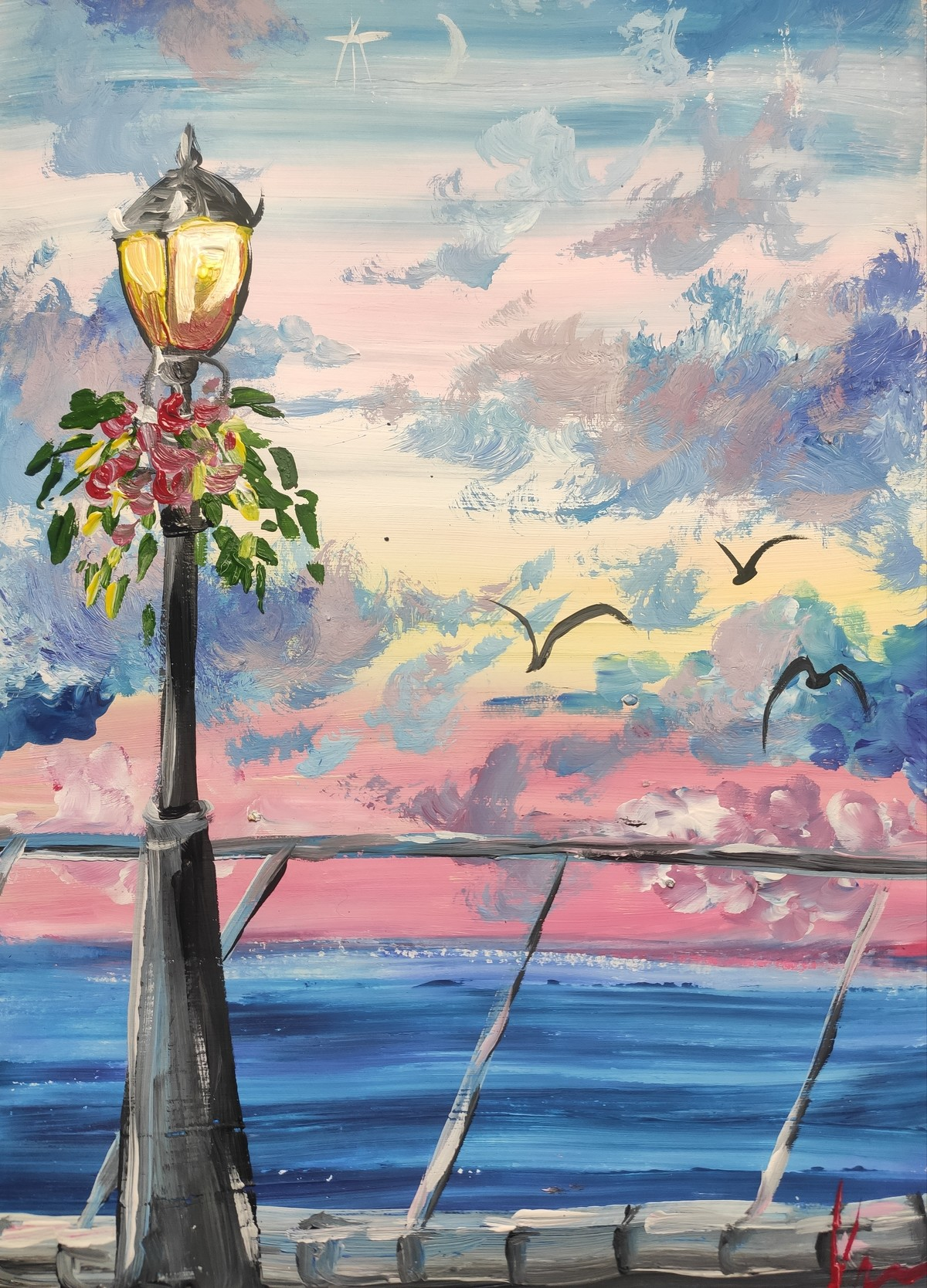 Работаю такими материалами как: масло, сухая пастель, акрил, гуашь, тушь, акварель